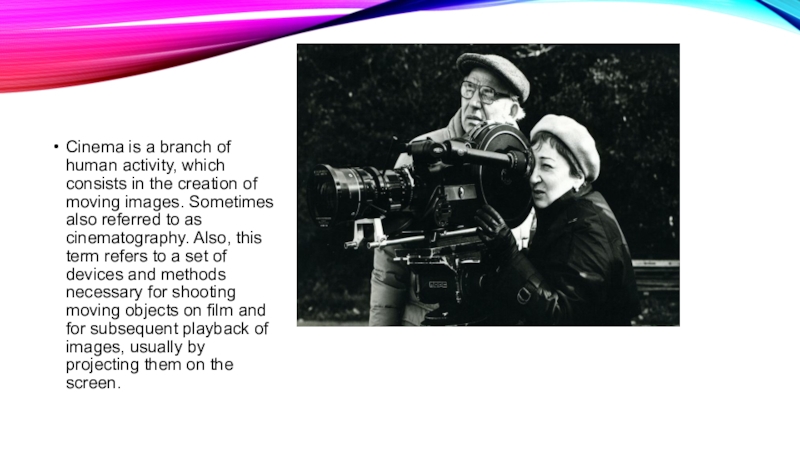 Слайд 2Cinema is a branch of human activity, which consists in the