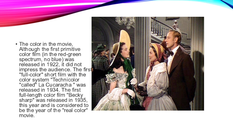 Слайд 7The color in the movie, Although the first primitive color film
