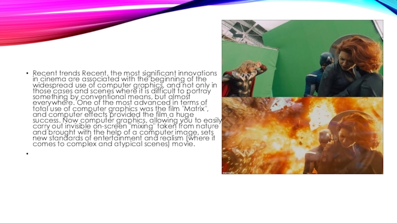 Слайд 11Recent trends Recent, the most significant innovations in cinema are associated
