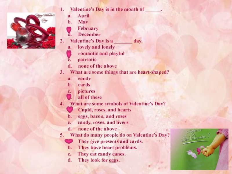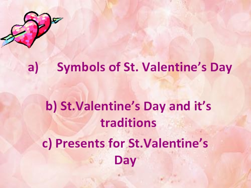 Symbols of St. Valentine’s Dayb) St.Valentine’s Day and it’s traditionsc) Presents for St.Valentine’s Day