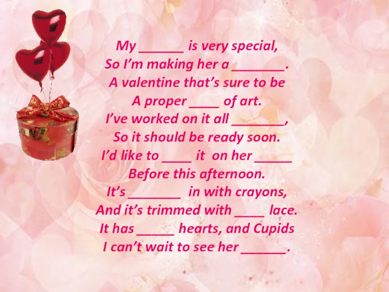My ______ is very special,So I’m making her a _______.A valentine that’s sure to beA proper ____
