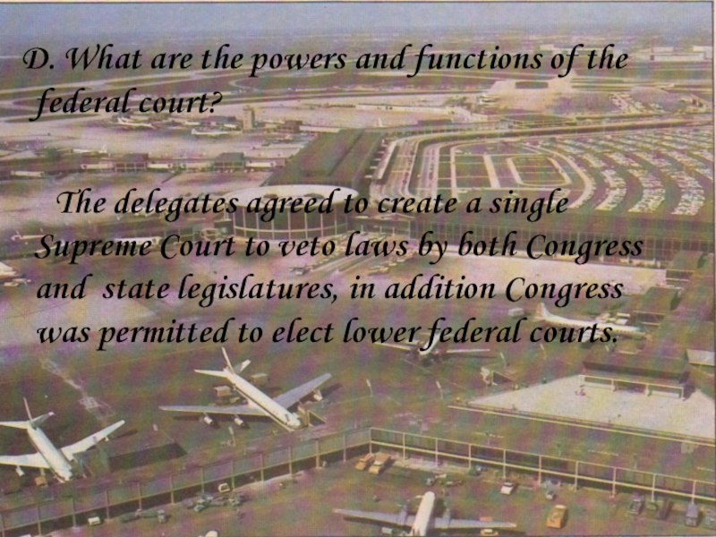 The delegates agreed to create a single Supreme Court to veto laws by both Congress and state legislatures, in addition Congress was permitted to elect lower federal courts.