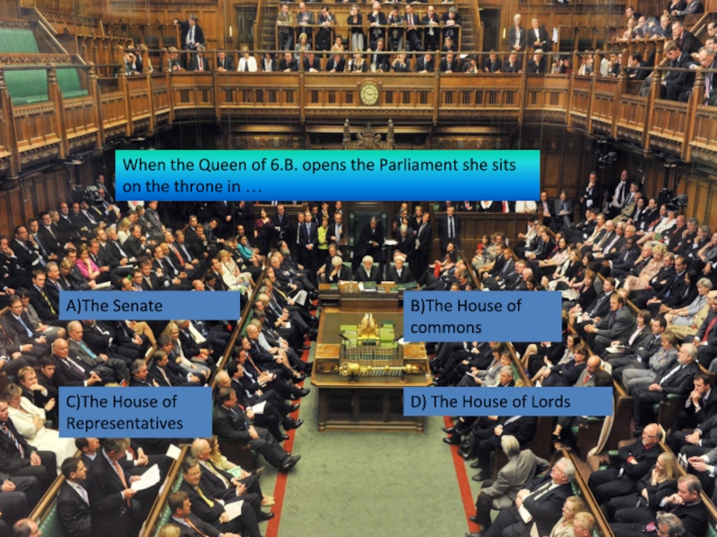 When the Queen of 6.B. opens the Parliament she sits on the throne in …