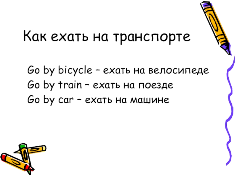 Как ехать на транспортеGo by bicycle – ехать на велосипедеGo by train – ехать на поездеGo by