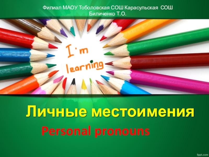 Личные местоимения Personal pronounsФилиал МАОУ Тоболовская СОШ Карасульская СОШБиличенко Т.О.