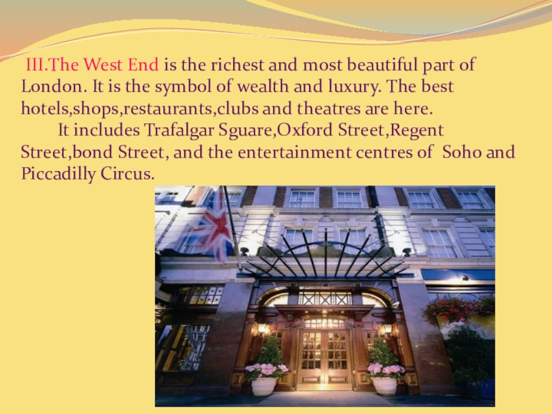 Слайд 7 III.The West End is the richest and most beautiful part