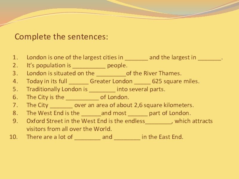 Complete the sentences: