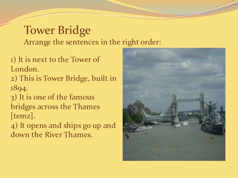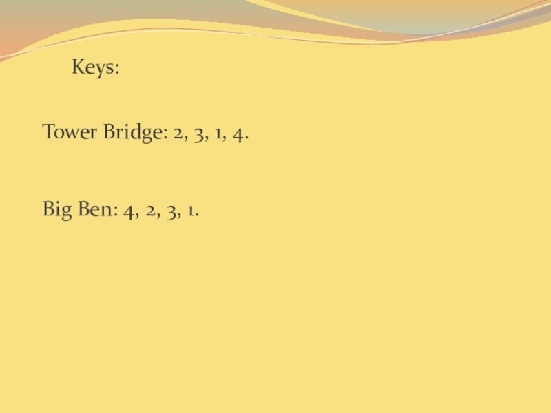 Tower Bridge: 2, 3, 1, 4.