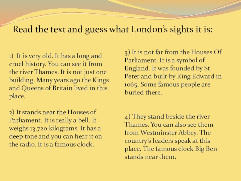 Read the text and guess what London’s sights