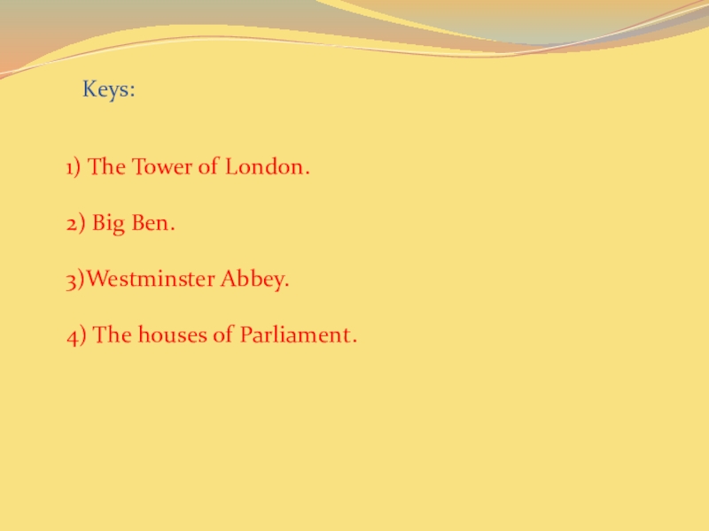 3) It is not far from the Houses Of Parliament. It is a symbol of England. It was founded by St. Peter and built by King Edward in 1065. Some famous people are buried there.