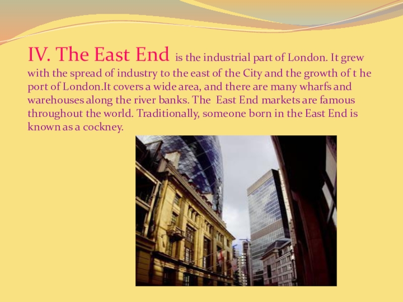 IV. The East End is the industrial part of London.