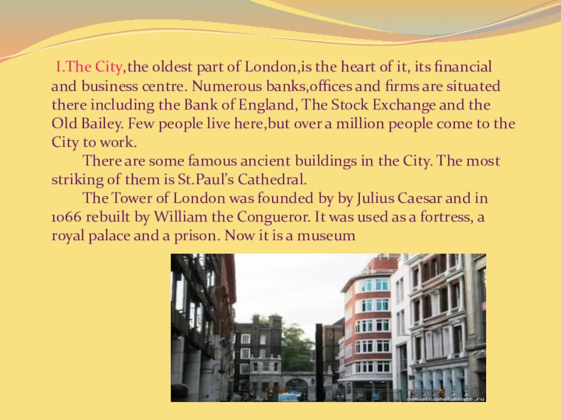 Слайд 5 I.The City,the oldest part of London,is the heart of it,