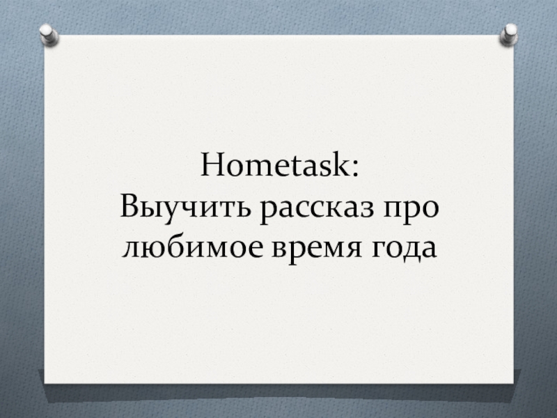 Слайд 6Hometask: Выучить рассказ про любимое время года