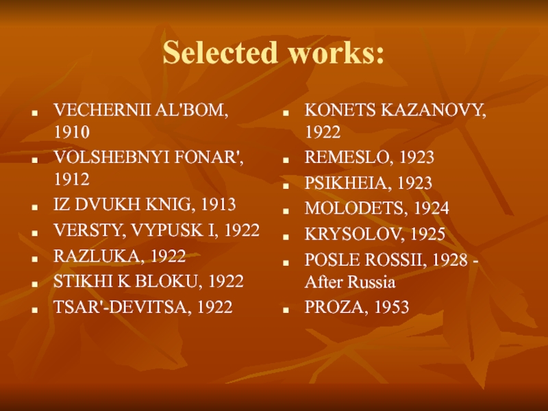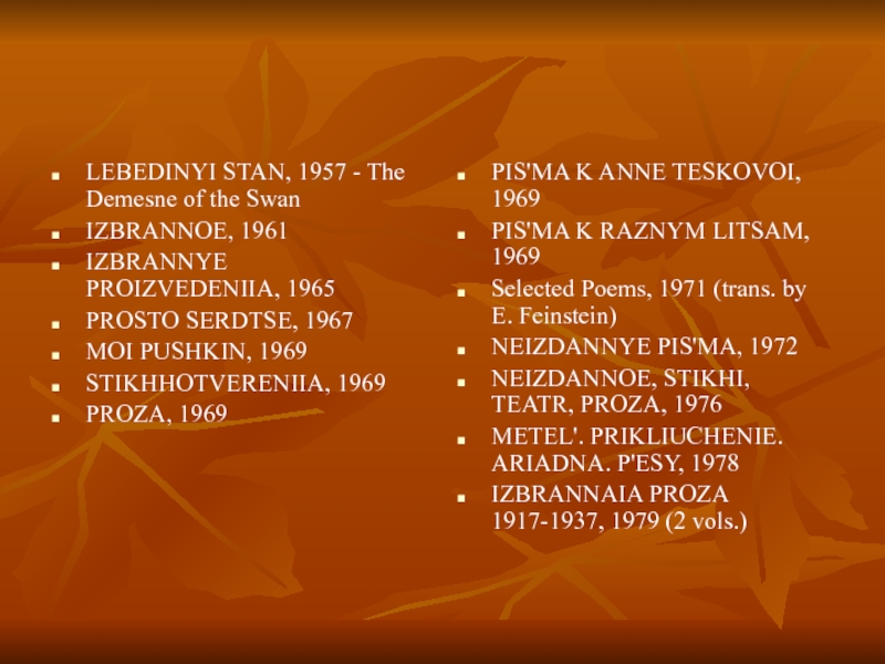 Selected Poems, 1971 (trans. by E. Feinstein)