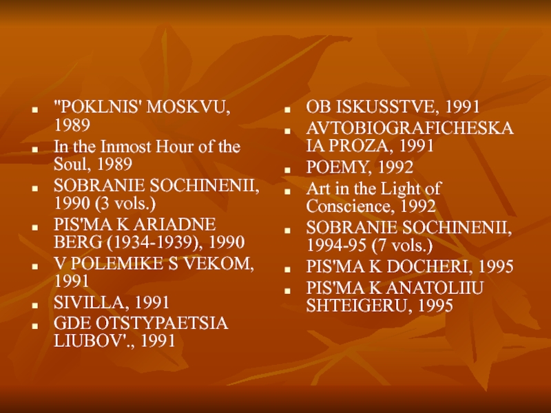 AVTOBIOGRAFICHESKAIA PROZA, 1991