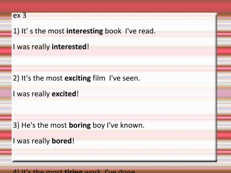 ex 31) It' s the most interesting book I've read.I was really interested! 2) It's the most