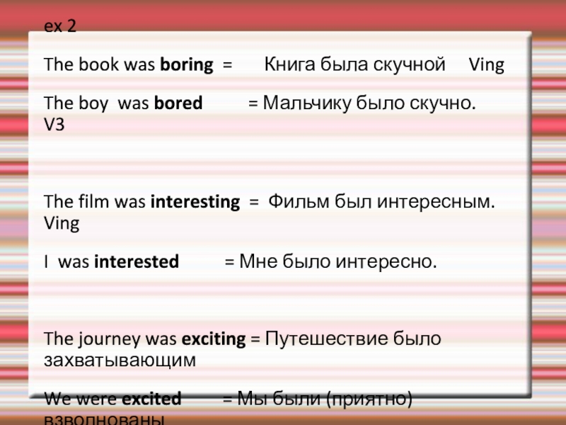 ex 2The book was boring =    Книга была скучной   VingThe boy was
