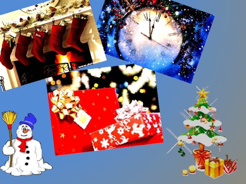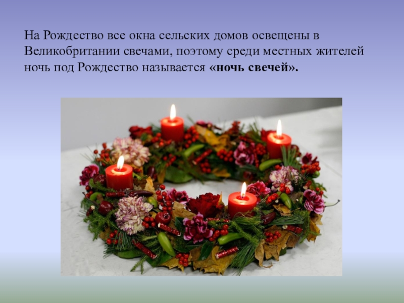 Слайд 3На Рождество все окна сельских домов освещены в Великобритании свечами, поэтому