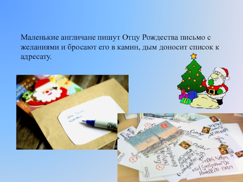 Слайд 9Маленькие англичане пишут Отцу Рождества письмо с желаниями и бросают его