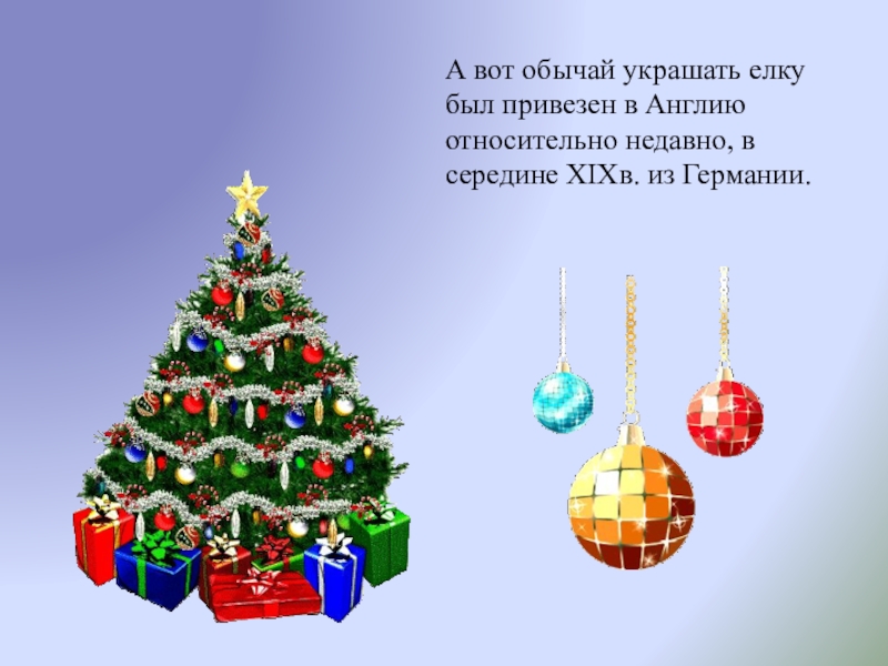 Слайд 16А вот обычай украшать елку был привезен в Англию относительно недавно,