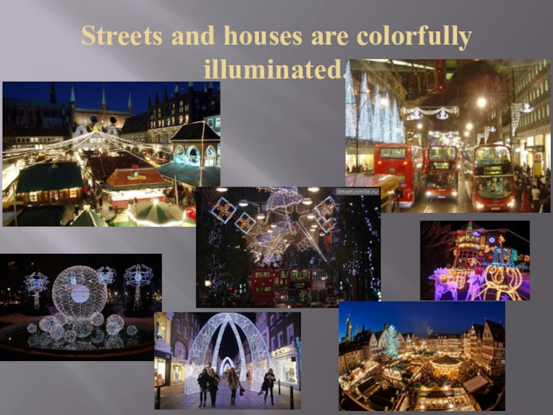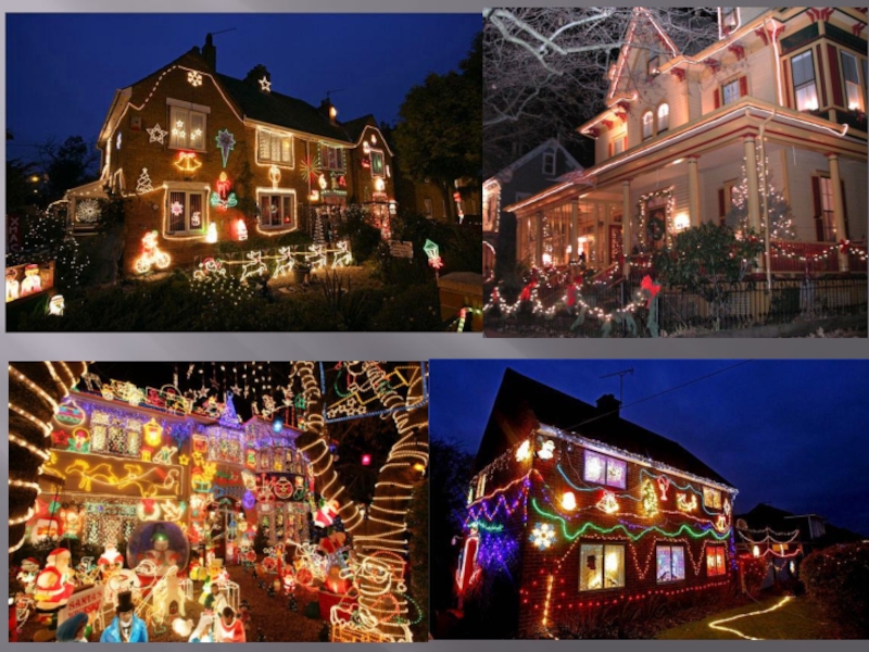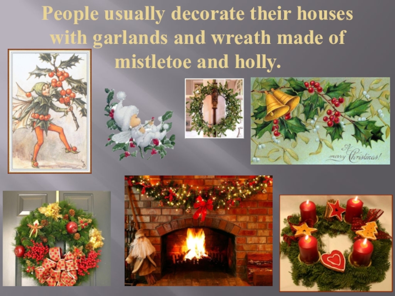 Слайд 21People usually decorate their houses with garlands and wreath made of