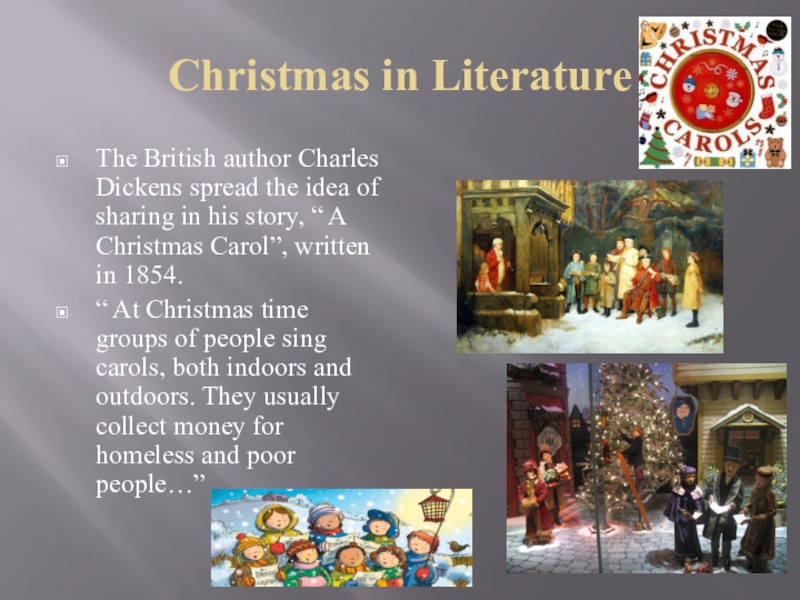 sharing in his story, “ A Christmas Carol”, written in 1854.