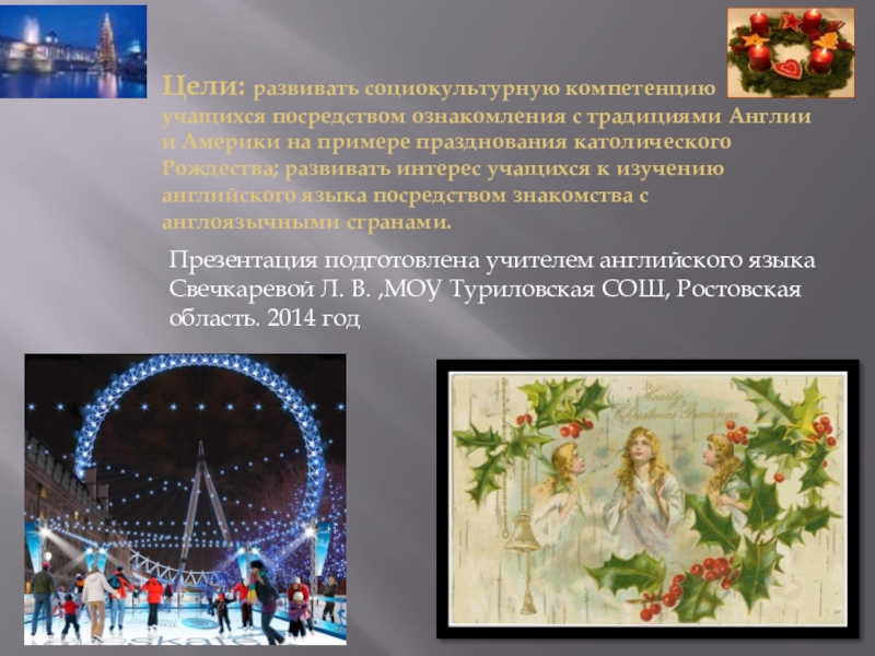 Америки на примере празднования католического Рождества; развивать интерес учащихся к изучению английского языка посредством знакомства с англоязычными странами.