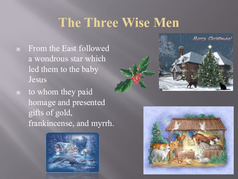 to whom they paid homage and presented gifts of gold, frankincense, and myrrh.