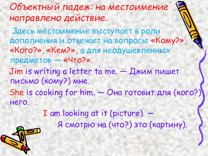 Объектный падеж: на местоимение направлено действие.