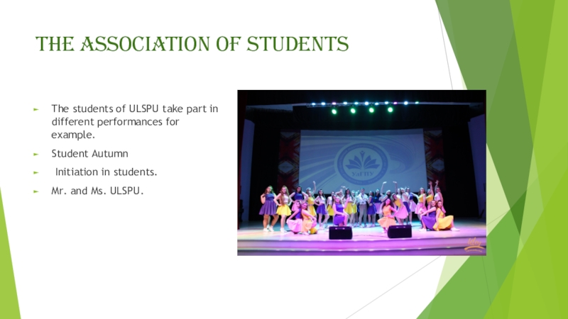 The association of studentsThe students of ULSPU take part in different performances for example.Student Autumn Initiation in