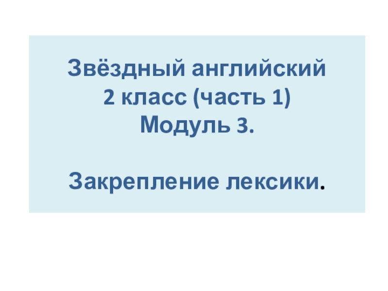 Слайд 1Звёздный английский 2 класс (часть 1) Модуль 3. Закрепление лексики.