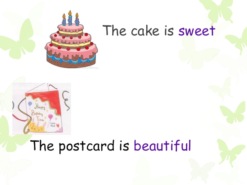 The cake is sweet The postcard is beautiful