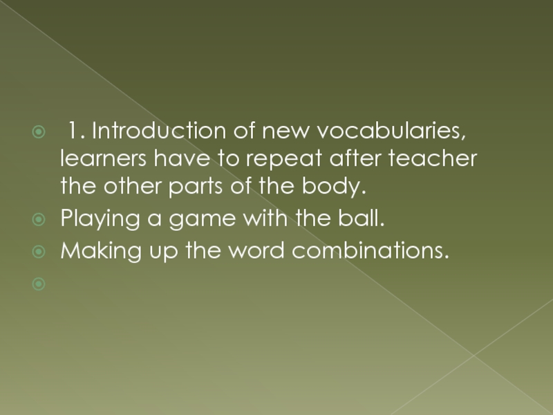 Слайд 4 1. Introduction of new vocabularies, learners have to repeat