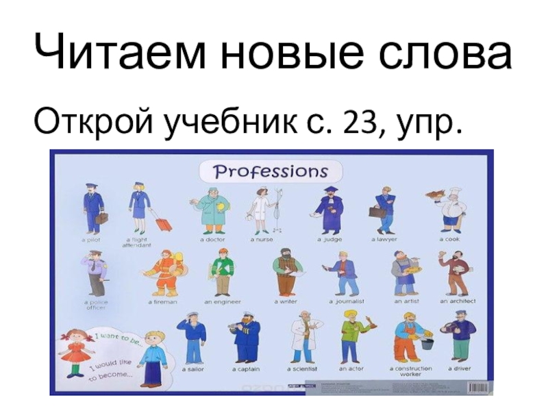 Читаем новые словаОткрой учебник с. 23, упр. 5(а)