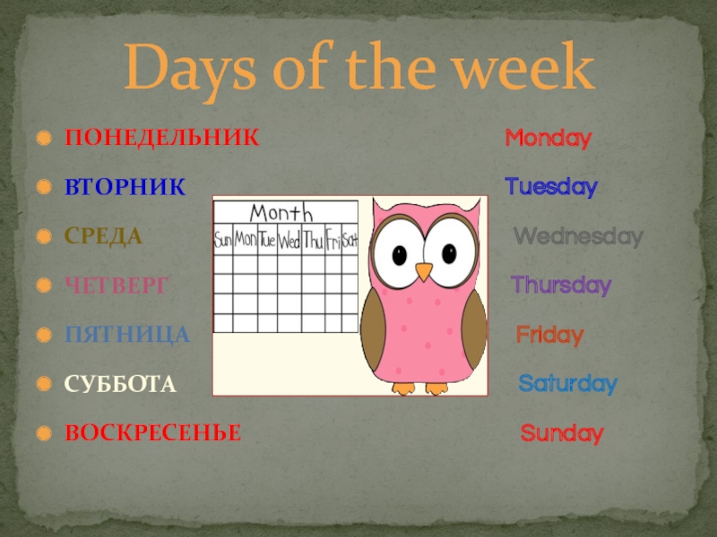 ЧЕТВЕРГ Thursday
