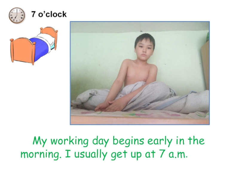 My working day begins early in the morning. I usually get up at 7 a.m.