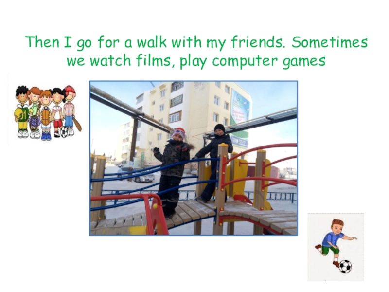 Слайд 7Then I go for a walk with my friends. Sometimes we