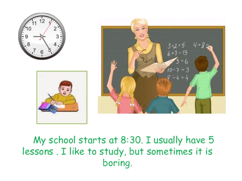Слайд 5 My school starts at 8:30. I usually have 5 lessons .