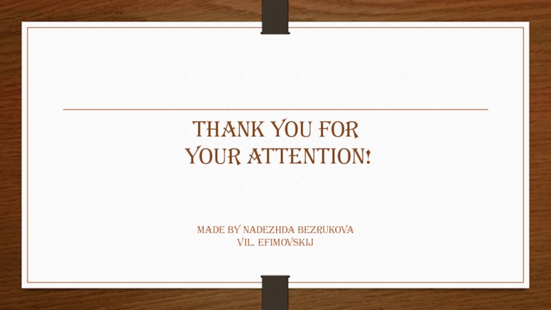 Слайд 9Thank you for your attention! Made by Nadezhda Bezrukova Vil. Efimovskij