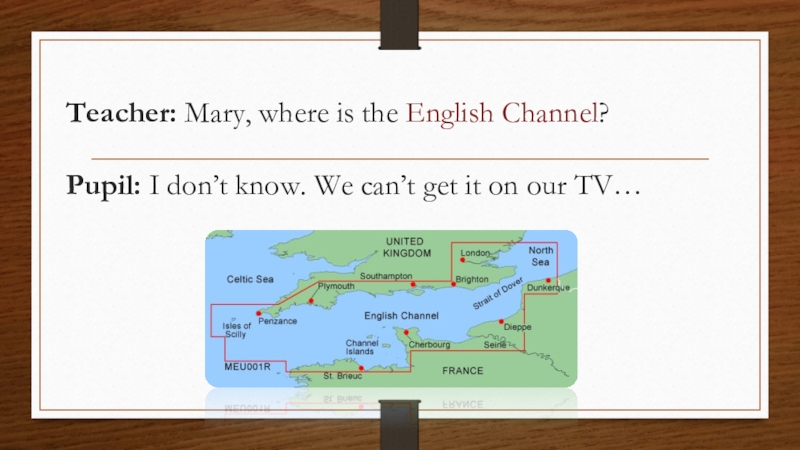 Слайд 8Teacher: Mary, where is the English Channel? Pupil: I don’t know. We