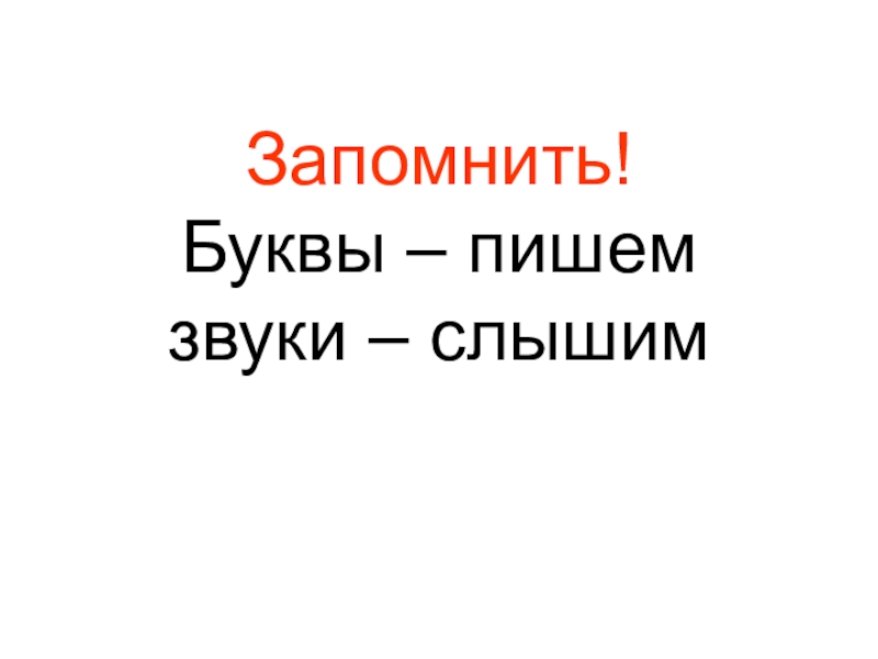 Слайд 10 Запомнить! Буквы – пишем звуки – слышим