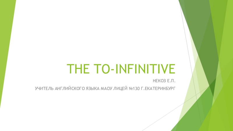 THE TO-INFINITIVEНЕКОЗ Е.П.УЧИТЕЛЬ АНГЛИЙСКОГО ЯЗЫКА МАОУ ЛИЦЕЙ №130 Г.ЕКАТЕРИНБУРГ