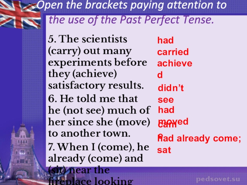 5. The scientists (carry) out many experiments before they (achieve) satisfactory results.