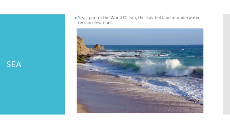 SEASea - part of the World Ocean, the isolated land or underwater terrain elevations