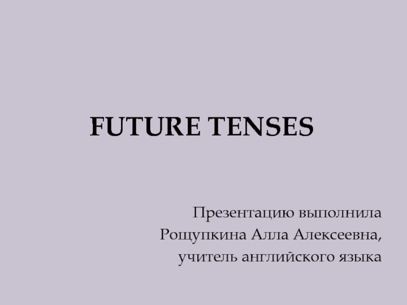 FUTURE TENSESПрезентацию выполнила Рощупкина Алла Алексеевна,учитель английского языка