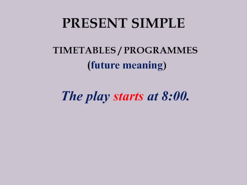 PRESENT SIMPLETIMETABLES / PROGRAMMES (future meaning)The play starts at 8:00.