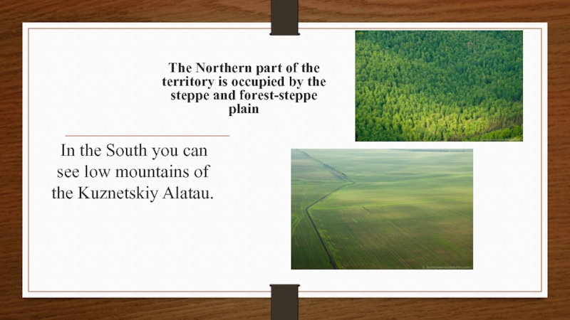 The Northern part of the territory is occupied by the steppe and forest-steppe plain