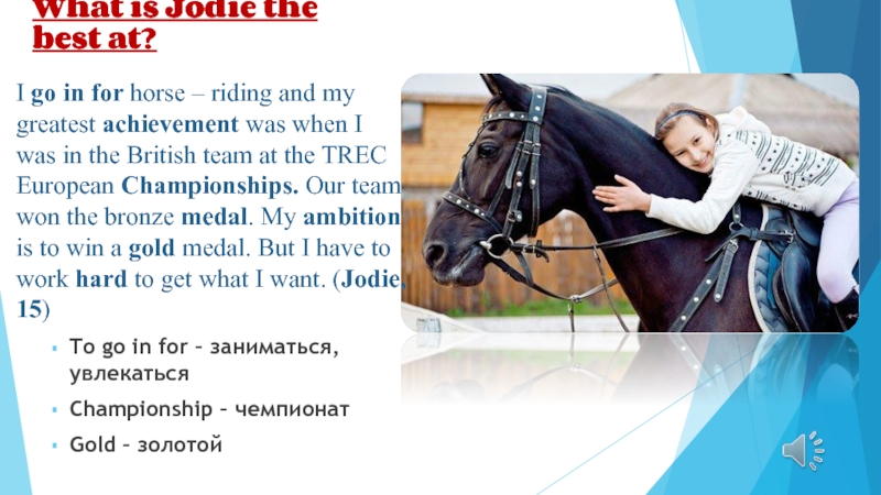 Jodie has achievements in sport.