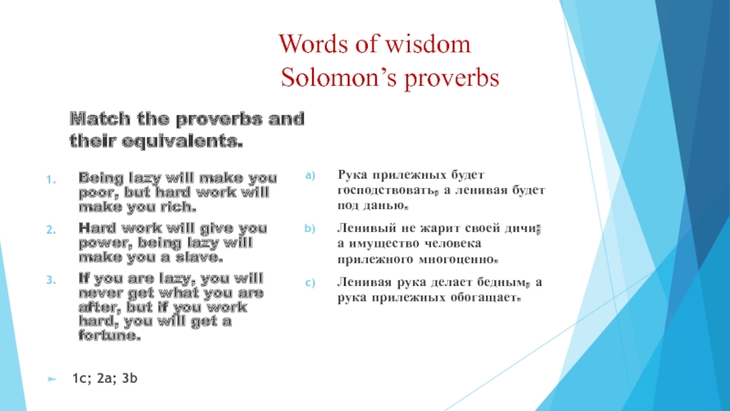 Match the proverbs and their equivalents.