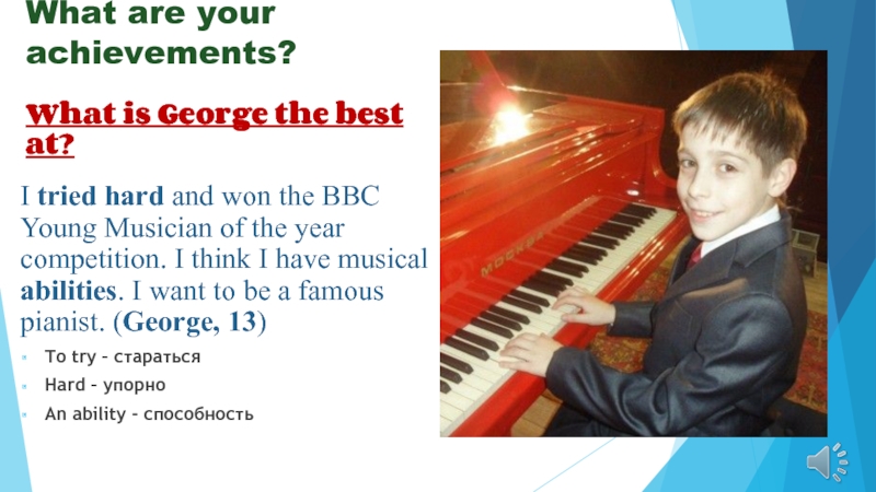 George’s ambition is to be a professional musician.